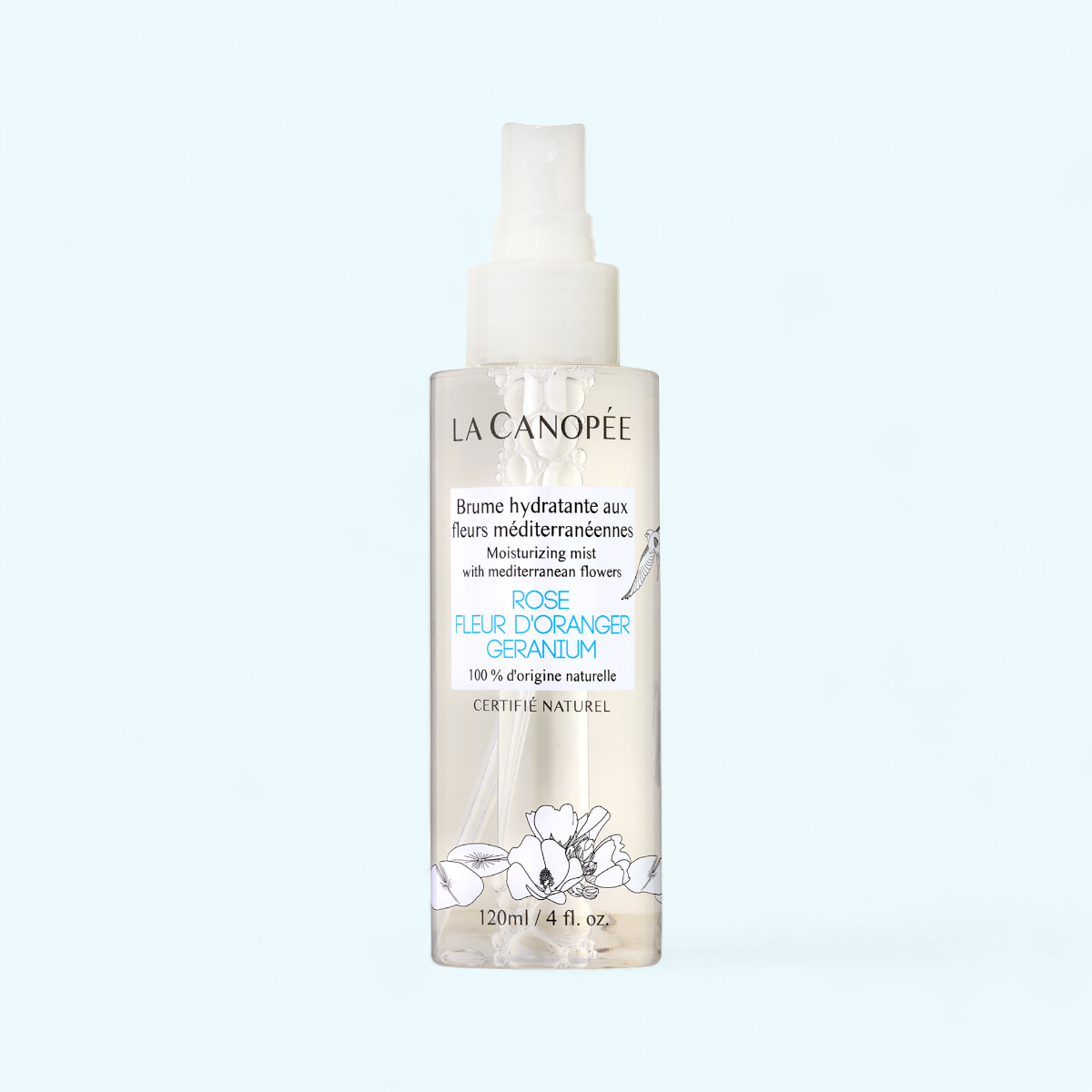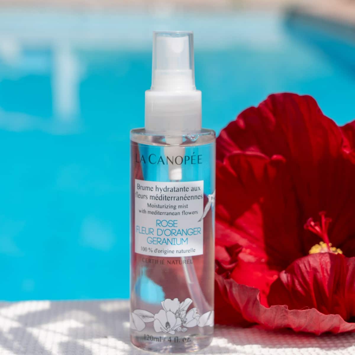 La brume hydratante aux fleurs méditerranéennes de La Canopée hydrate, rafraîchit et apaise la peau grâce à un mélange d’hydrolats et huiles complémentaires entre eux.