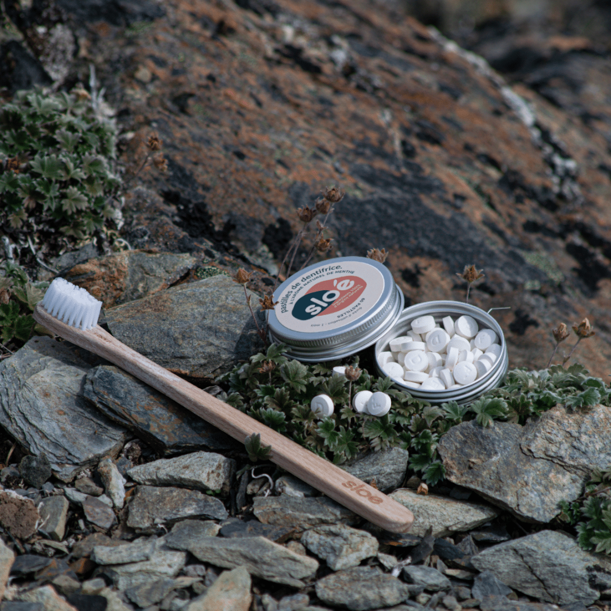 Le dentifrice solide en pastilles Sloé à la menthe nettoie les dents en douceur, aide à prévenir les caries, la plaque dentaire et les taches de surface, tout en respectant l’équilibre buccal.