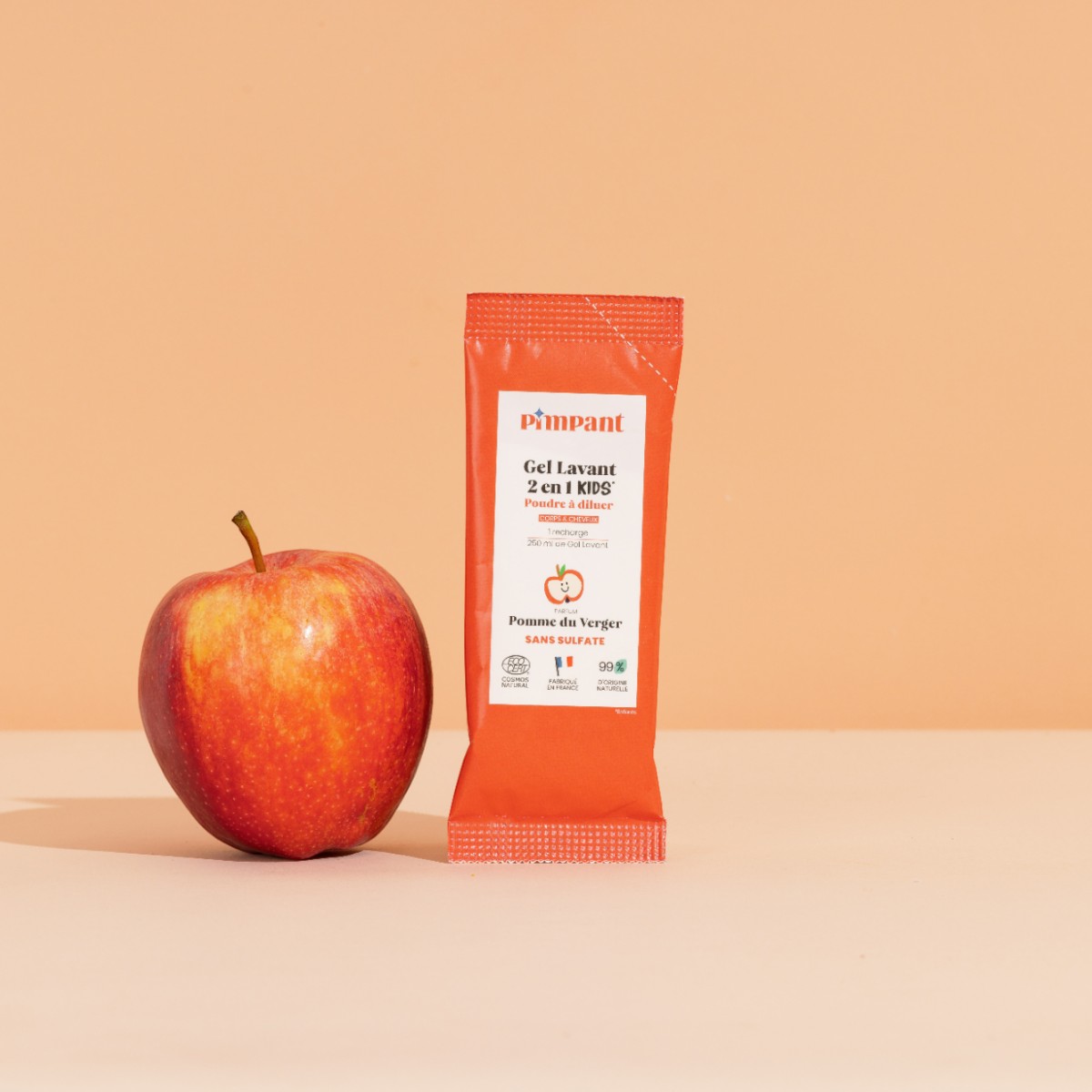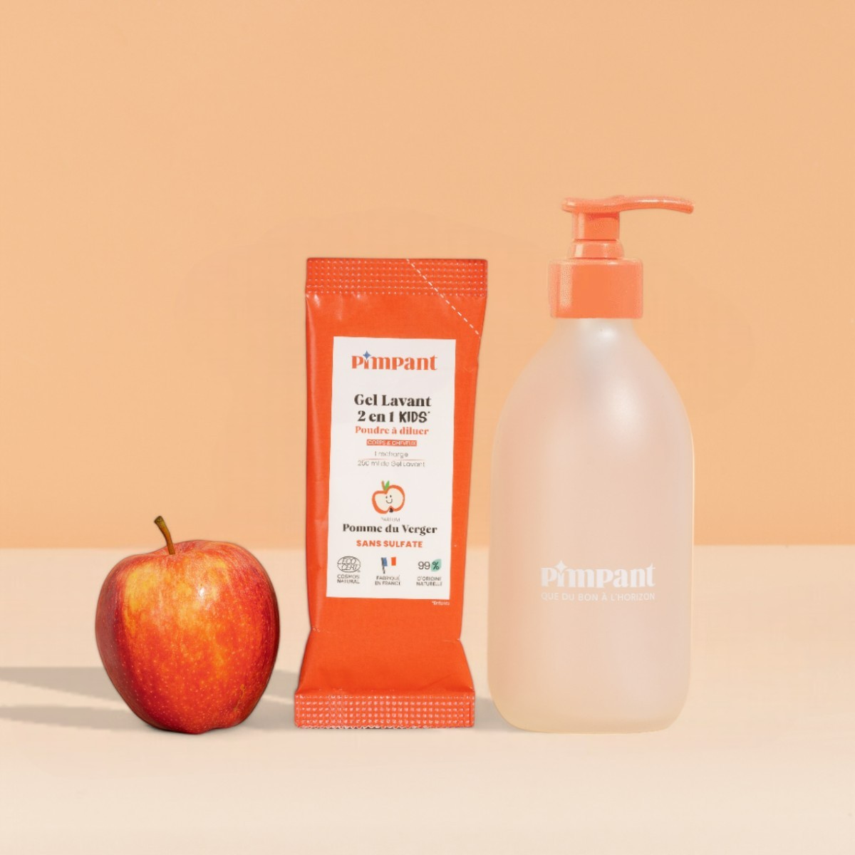 Gel lavant corps et cheveux doux et minimaliste pour enfants au parfum de pomme, à la poudre de yaourt et à l’inuline