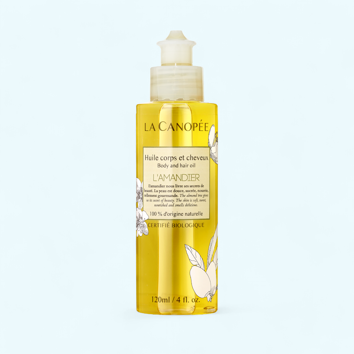 L’huile sèche L’Amandier La Canopée est un soin multi-usage pour nourrir le corps et les cheveux. Sa formule 100% naturelle allie plusieurs huiles végétales fluides riches en antioxydants qui protègent des effets du stress oxydatif et qui s’adapte à tous les types de cheveux ou de peaux.