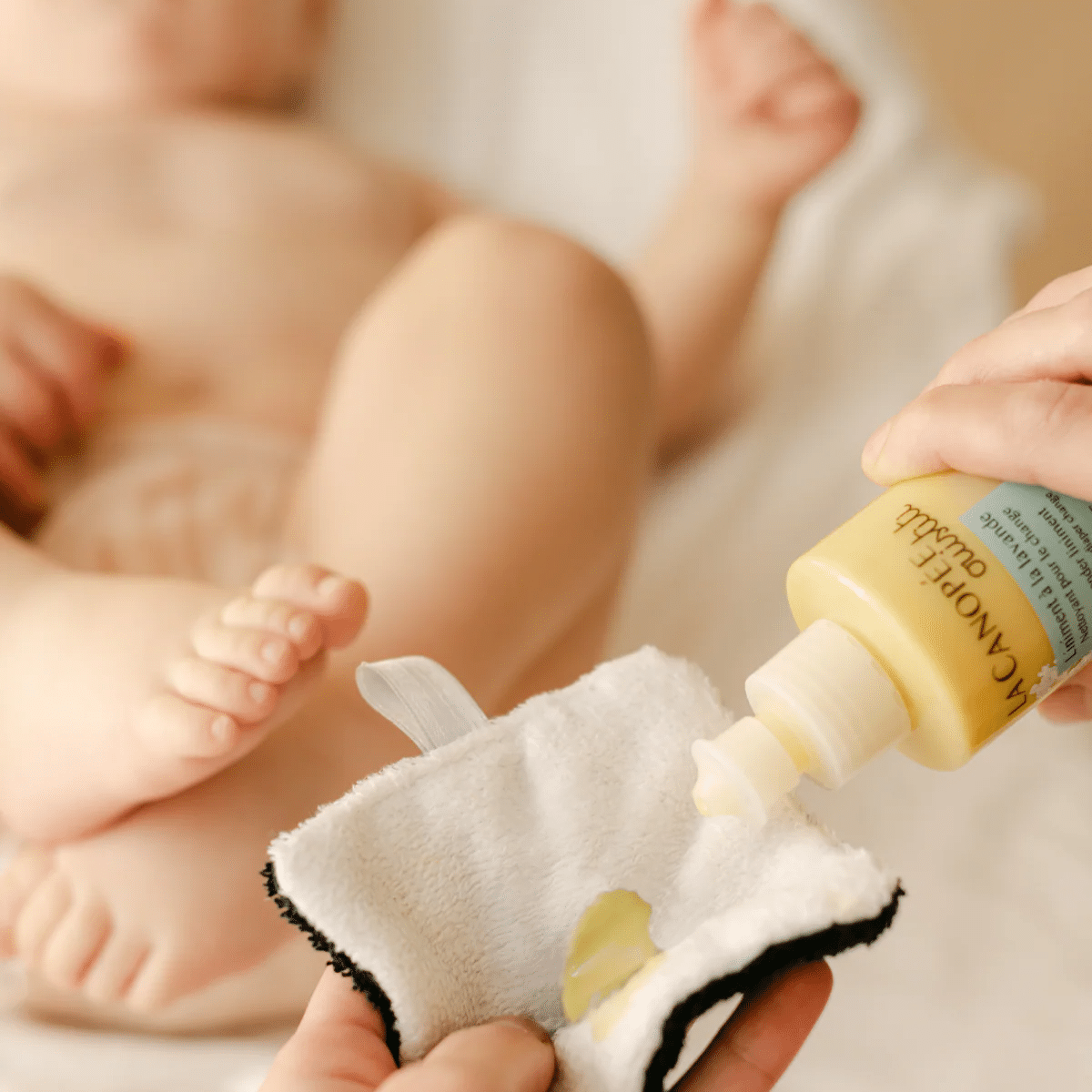 Liniment doux apaisant au macérat de lavande pour nettoyer la peau délicate des bébés lors du change