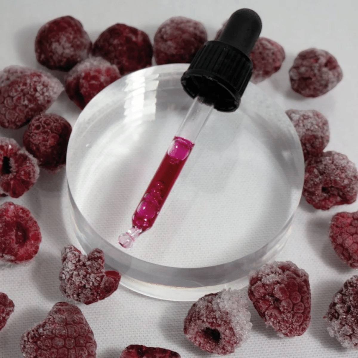 L’extrait de framboise permet d’éliminer en douceur les cellules mortes et de désincruster les impuretés et points noirs, tout en donnant éclat et couleurs à la peau. Le PHA contenu dans le soin participe à l’exfoliation douce du produit.