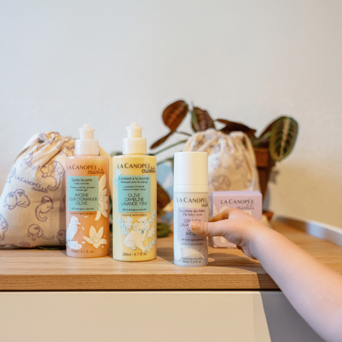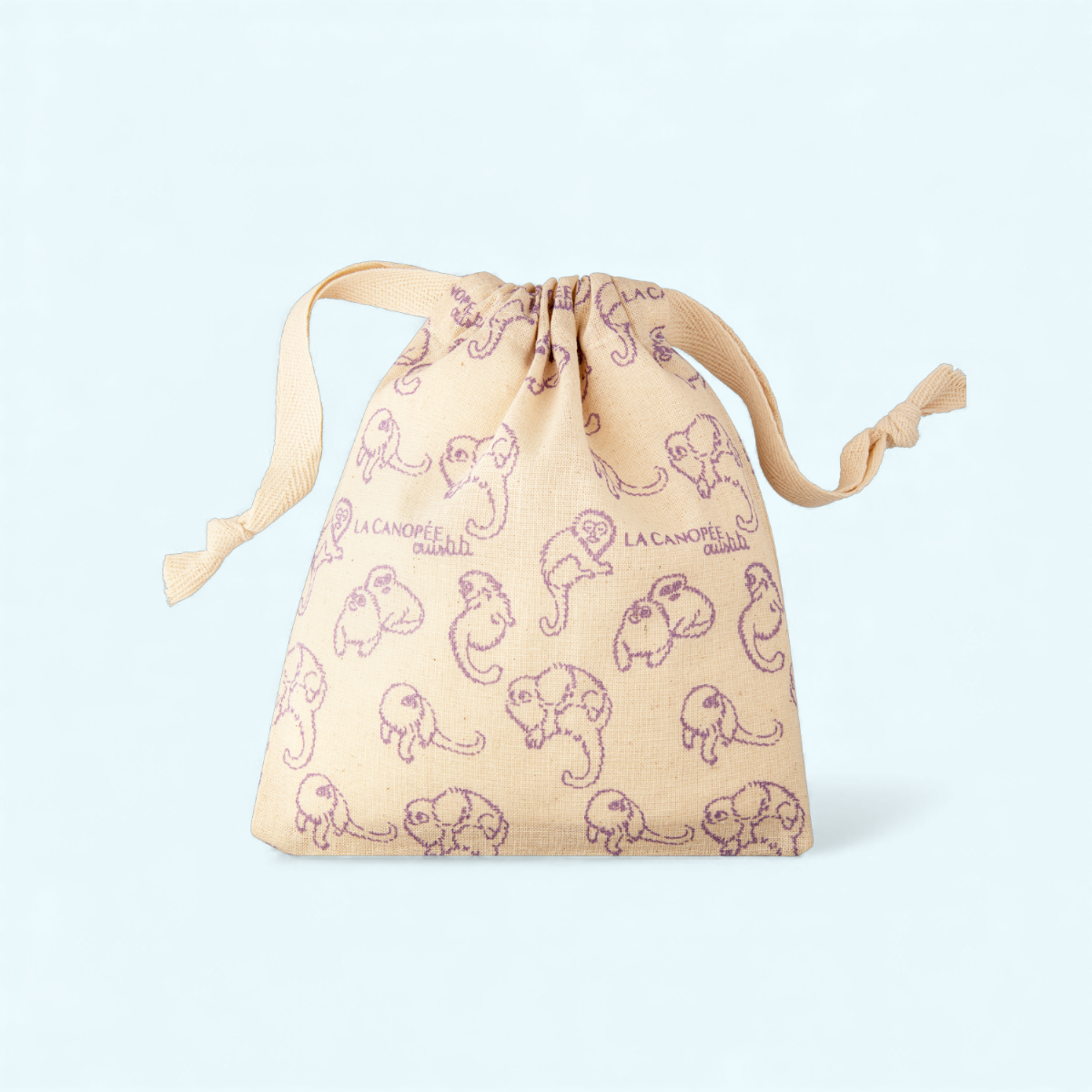 Le Pochon Ouistiti La Canopée est conçu pour vous aider à organiser les soins et produits de votre enfant de façon durable et élégante.