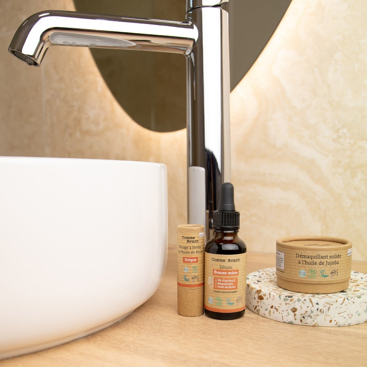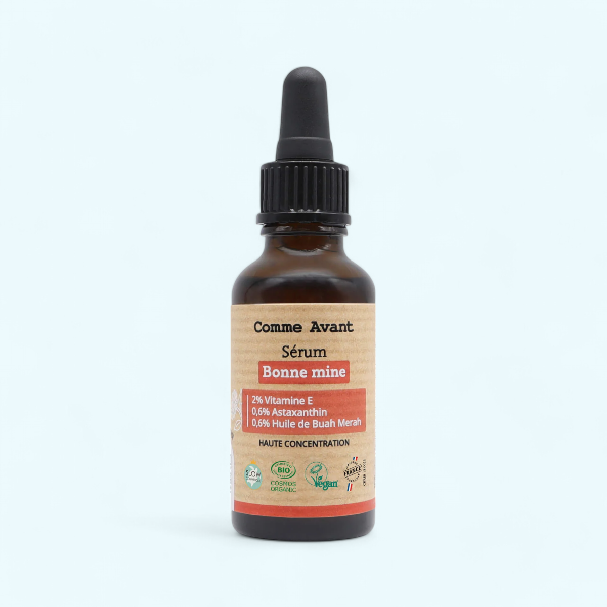 Le Sérum Bonne Mine Comme Avant est un soin visage naturel adapté à tous les types de peaux conçu pour raviver l’éclat, unifier le teint et protéger la peau des agressions extérieures.