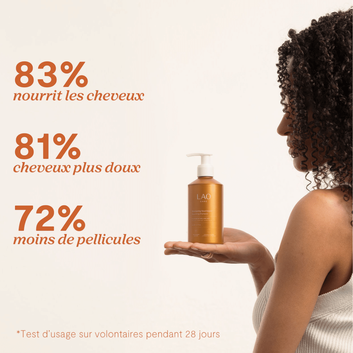 Le Shampoing Nourrissant LAO Care est un soin lavant doux formulé pour nettoyer en douceur les cheveux secs, épais, bouclés ou frisés, tout en les nourrissant.